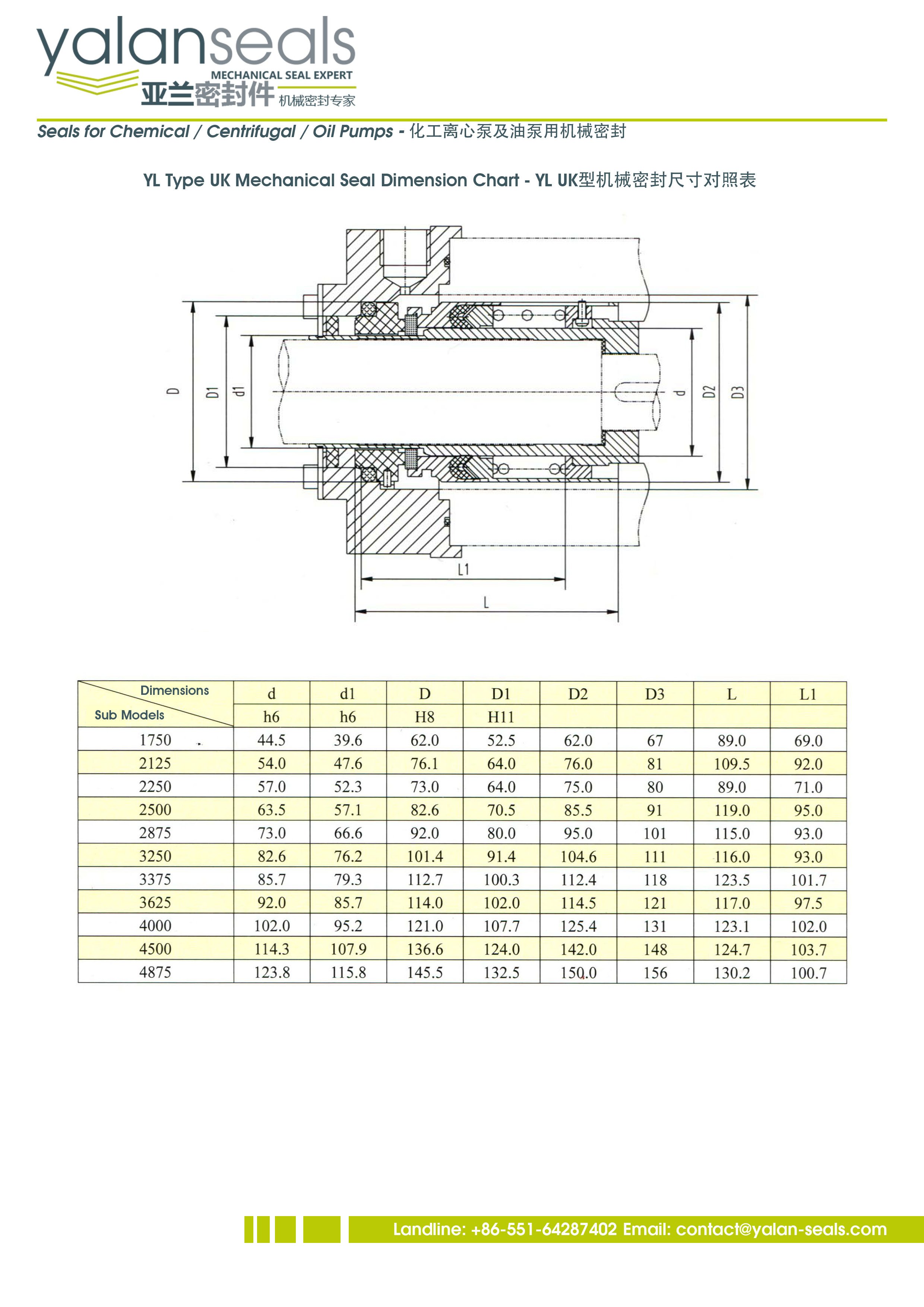 亞蘭UK型單彈簧機(jī)械密封件,用于油泵和化工流程泵。