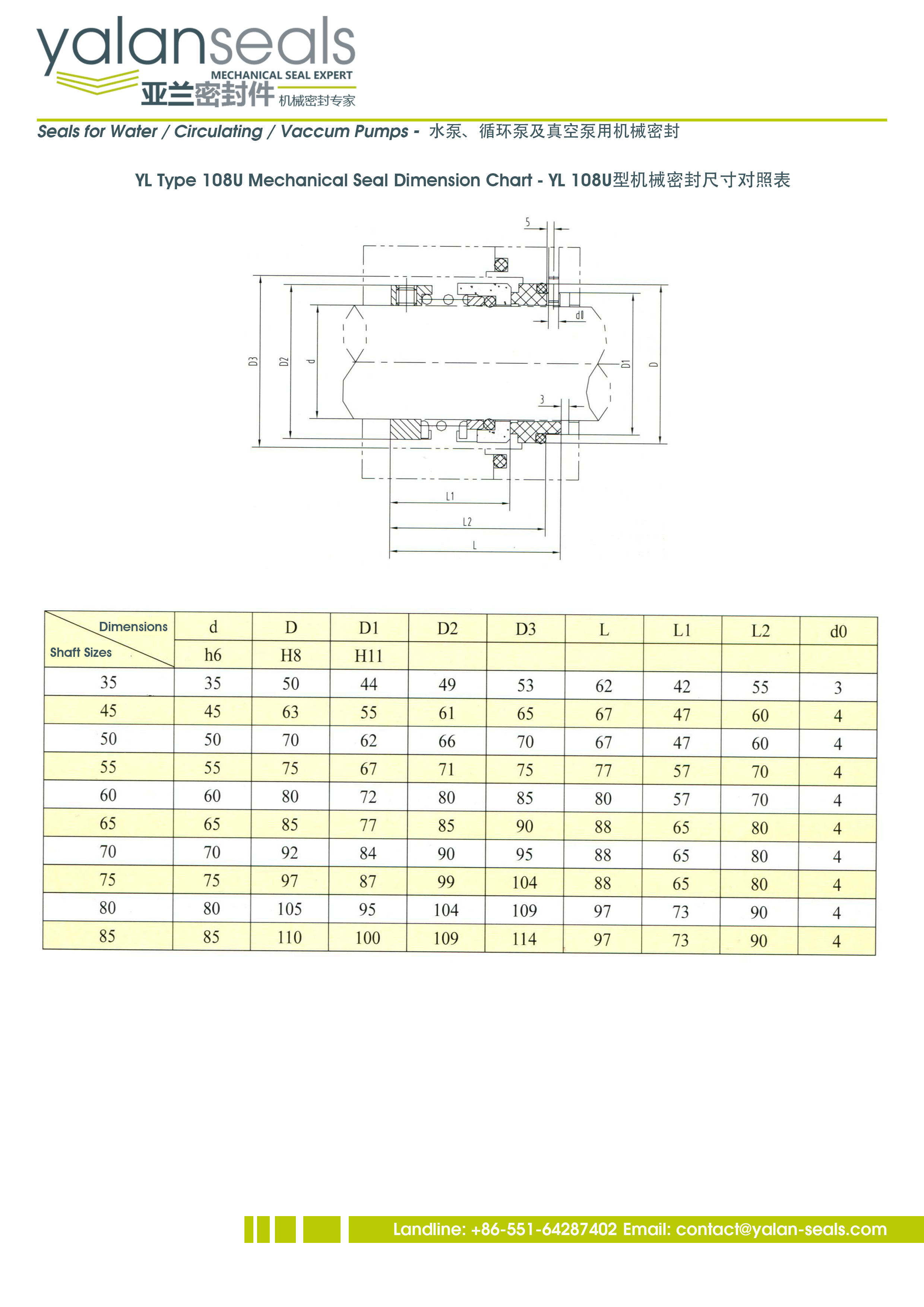 YALAN 108U Single Spring Mechanical Seal