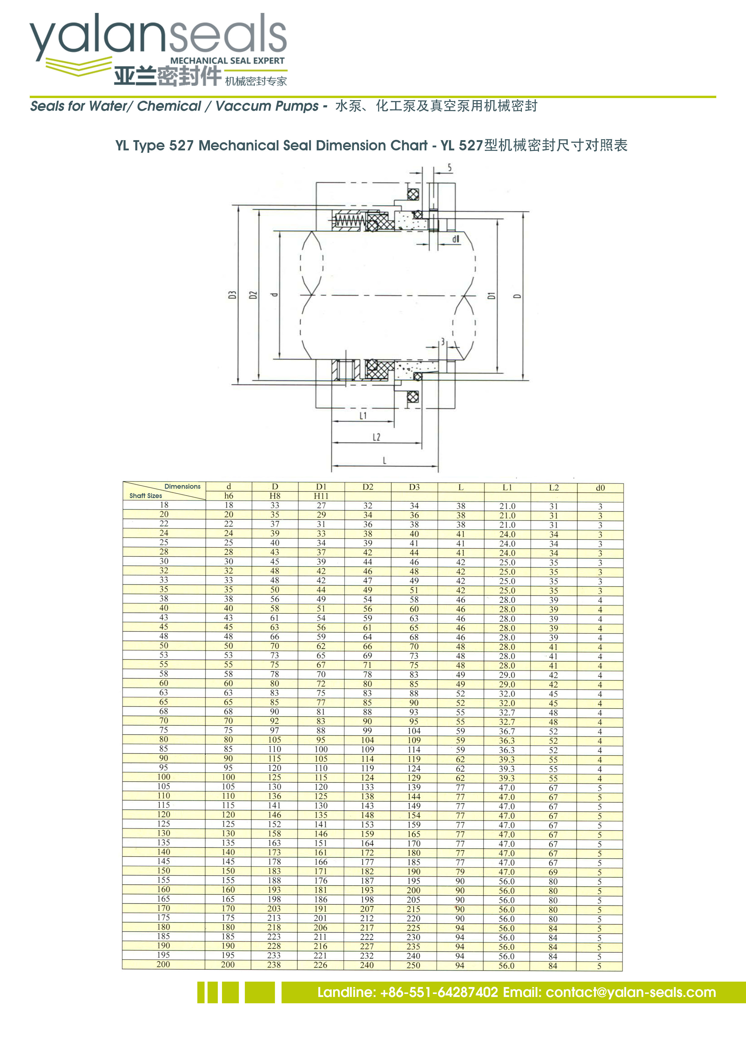 亞蘭527型機械密封,用于化工泵、水泵和真空泵。