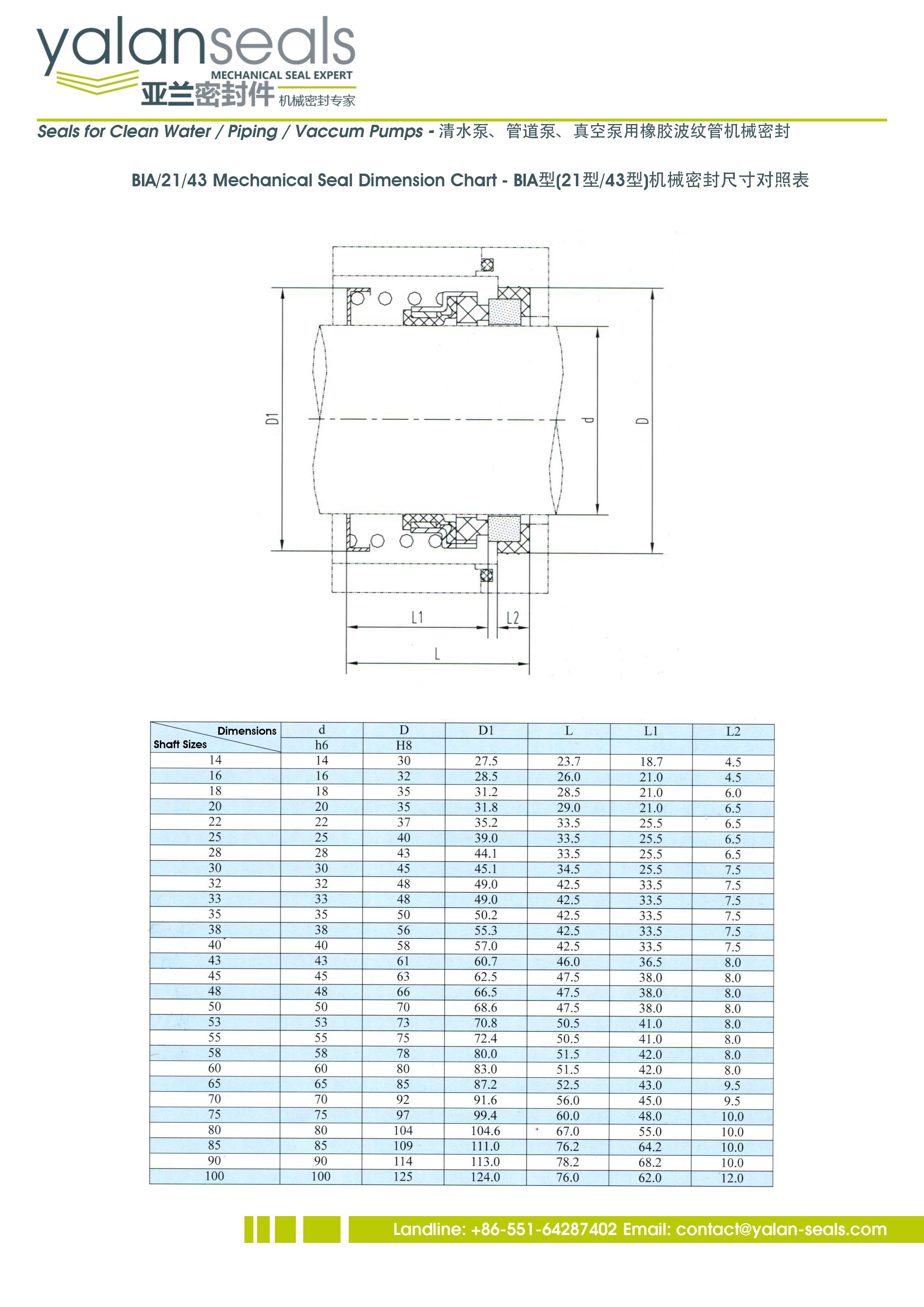 亞蘭BIA型,同類(lèi)型也被成為21型或43型機(jī)械密封件,用于清水泵、管道泵和真空泵